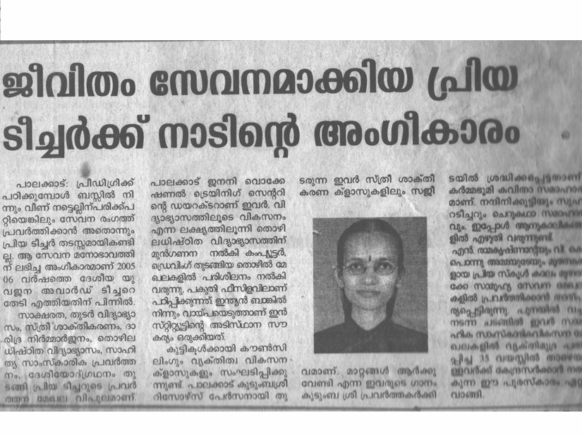From school days, Priya was an active member of National Service Scheme (NSS) and used to reach out to many people in need. In 2001, she became part of government initiated ‘Kudumbasree’ in Palakkad and worked on projects to empower womenfolk in and around the district. But gradually Priya realized that in order for her ideas to take off, she needed to start something on her own. So in 2001, she started Janani with the help of a few kind souls. The organization was registered as a society in the year 2003.
